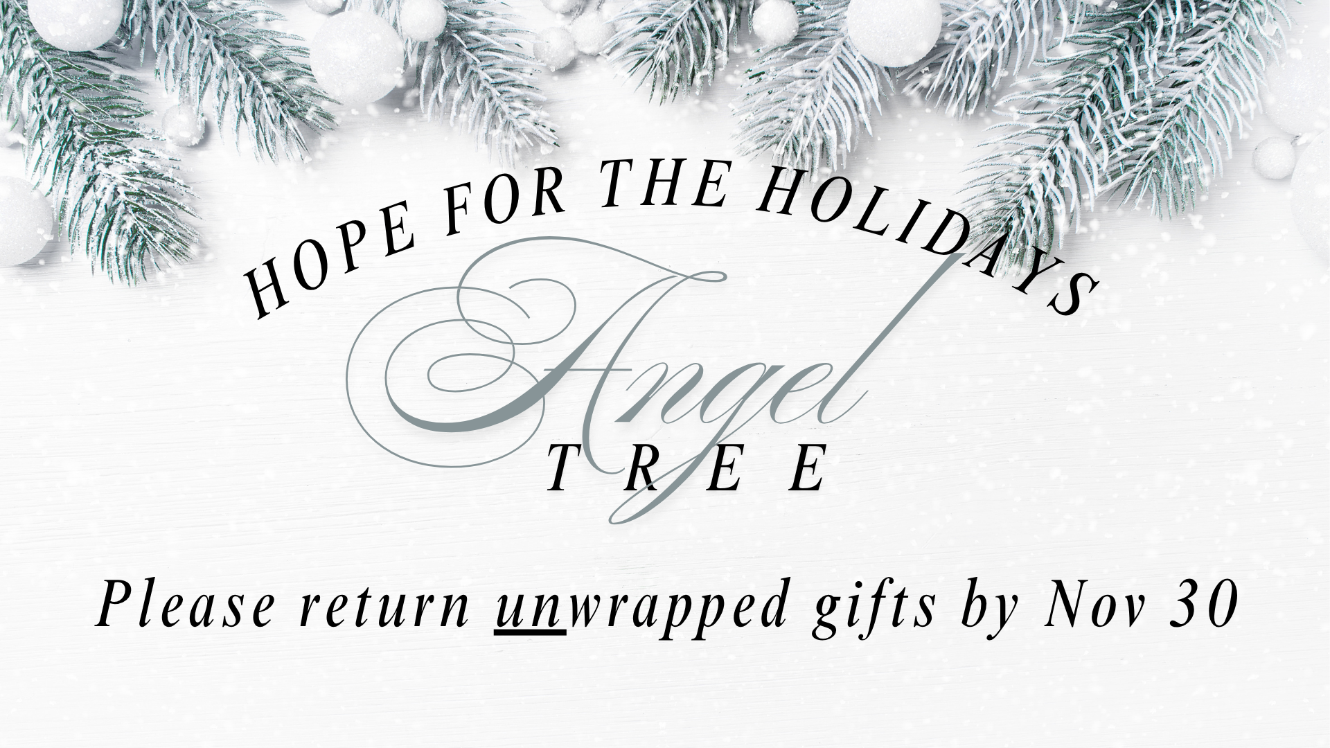ANGEL TREE | HOPE FOR THE HOLIDAYS Please return your unwrapped gift(s) to the church by November 30 to help make a child's Christmas wishes come true. These gifts may be left...